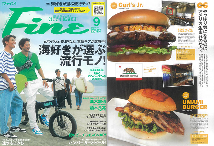 8月9日売りFine9月号にてUMAMI BURGERの掲載を頂きました! ■掲載商品(P.84) ・スパイシーハラペーニョ¥1,848 ■掲載店舗 ・ウマミバーガー青山店 東京都港区北青山3-15-5 AM11:00~PM10:00 TEL:03-6452-6951 この機会にぜひご利用ください!
